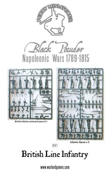 The figures in this box represent a regiment of British Line Infantry in a firing line and a Company of Riflemen skirmishing. Included in the box are a Line regimental command, centreand flank companies and parts to allow you to build a unit from either the Peninsular War (1807-14) or the Waterloo Campaign (1815).