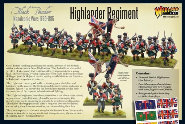 No wargames army of the period is complete without a brigade of these remarkable troops. Black Powder players will appreciate their firing and melee skills, whilst their opponent will groan with despair when the ‘ladies from hell’ march towards them, sporrans swinging, colours flying and pipes skirling.