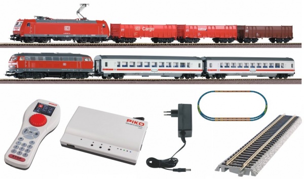 PIKO 59014 SmartControl WLAN Cyfrowy podwójny zestaw BR 185 i BR218 DB AG tory na nasypie