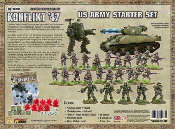 Konflikt ’47 is a standalone game inspired by the hugely successful Bolt Action, designed by Clockwork Goblin Miniatures and produced by Warlord Games and Osprey Publishing. Adding to the core rules that many gamers are familiar with from Bolt Action, Konflikt ’47 allows the addition of completely new types of units and models to existing 28mm Bolt Action armies and the creation of completely new forces set in the alternate future of 1947.